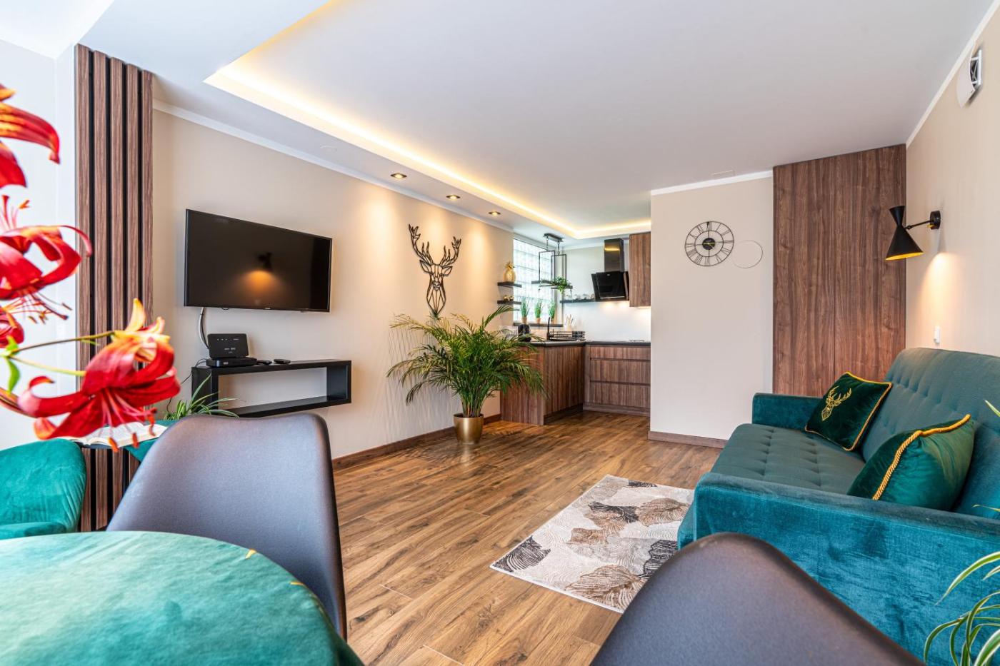 W obiekcie zapewniono część wypoczynkową z telewizorem z płaskim ekranem z dostępem do kanałów satelitarnych, kuchnię z pełnym wyposażeniem, w tym lodówką i zmywarką, a także prywatną łazienkę z prysznicem oraz suszarką do włosów. Do dyspozycji Gości jest też taras, a z okien roztacza się widok na góry. Wyposażenie obejmuje również mikrofalówkę, płytę kuchenną, toster i czajnik.