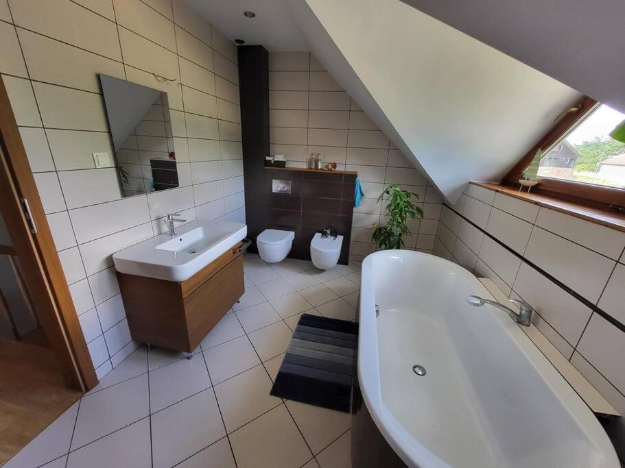 Willa. The fireplace is a top feature of this villa. Guests will find a stovetop, a refrigerator, a dishwasher and kitchenware in the kitchen. The villa also includes a barbecue. Boasting a terrace with garden views, this villa also features a washing machine and a flat-screen TV with cable channels. The unit has 7 beds. Willa - 10 osobowy. Powierzchnia pokoju ok.: 130 mkw.